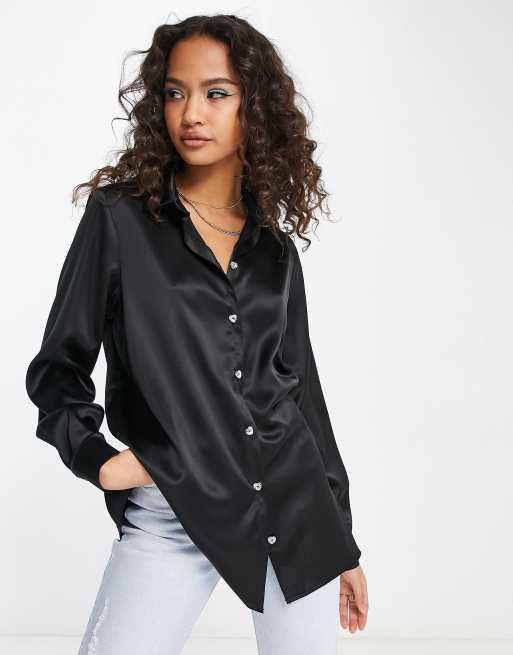Camisa negra saten sales mujer