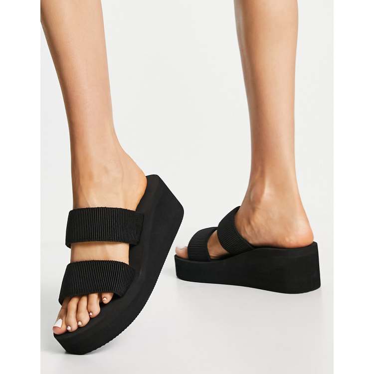 Black double sales strap platform sandals