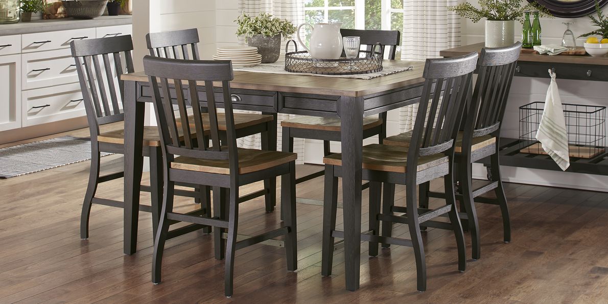 7 piece counter sales height dining set black