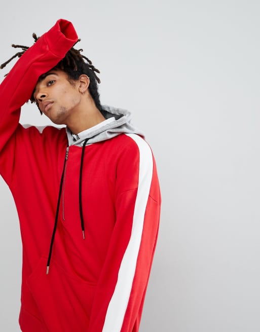 Red hoodie sales with white stripe