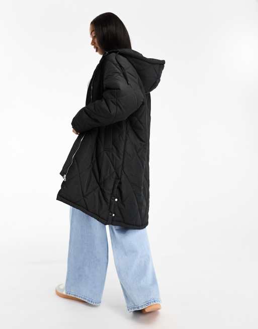 - longline hooded puffer coat womens