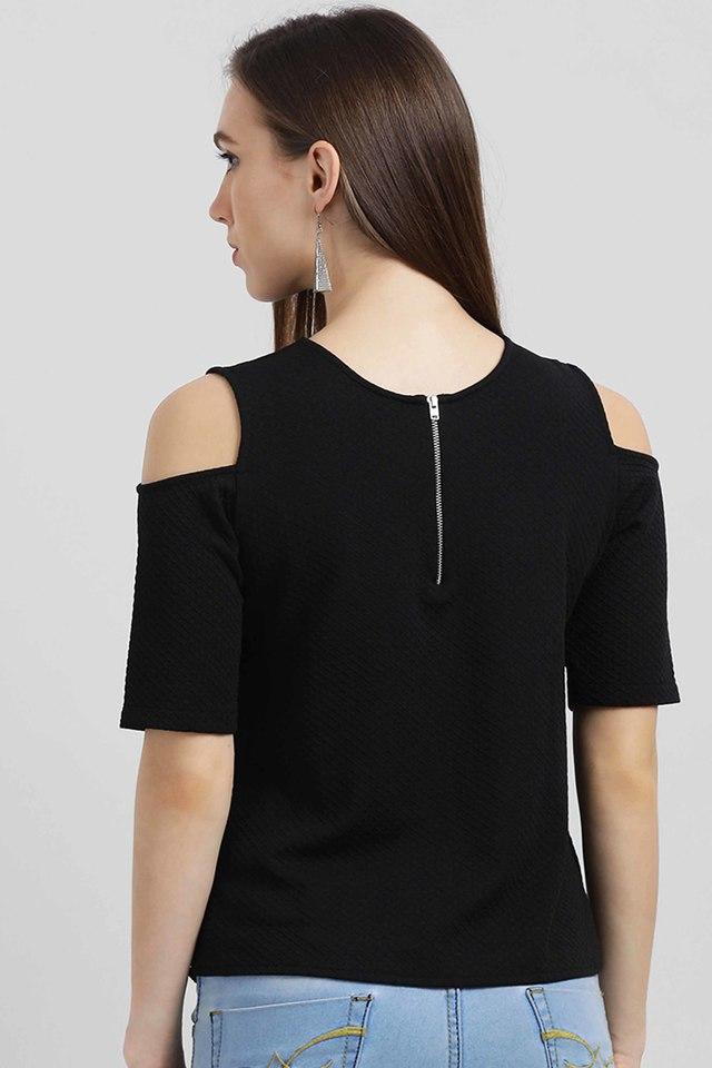 Cold shoulder zipper sales top