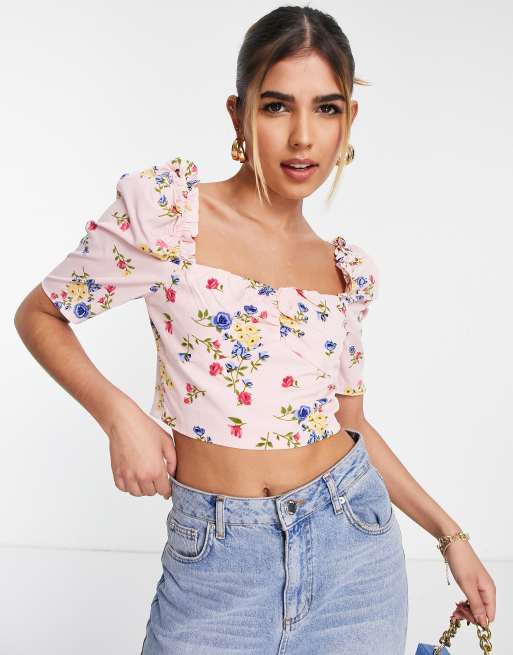 Floral puff sleeve sales top