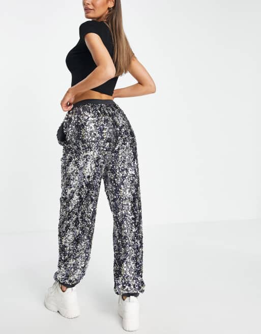 Silver sequin jogger sales pants