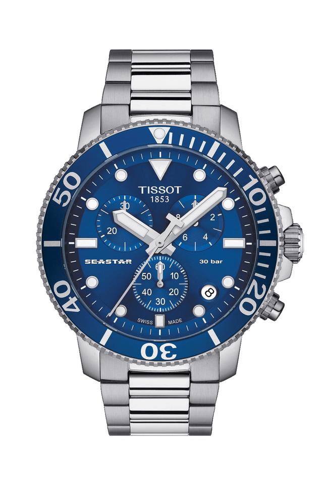 Silver watch sales with blue dial
