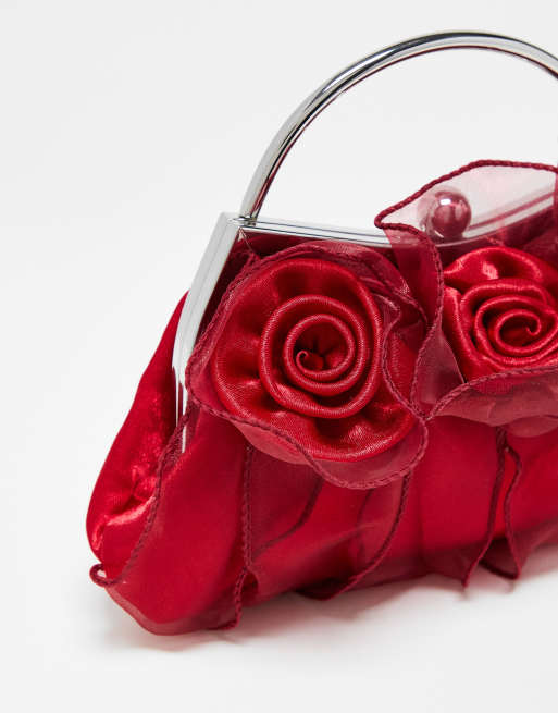 Red sales floral clutch