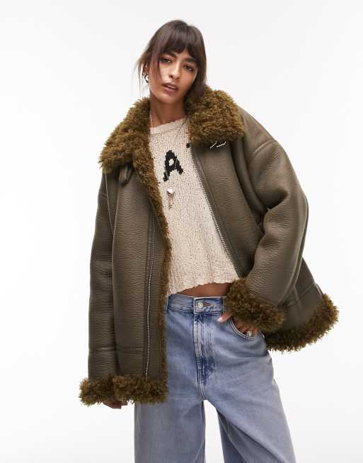 Veste fausse fourrure sales kaki